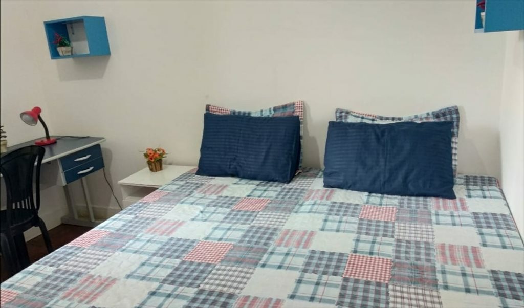 # QUARTO INDIVIDUAL DCE a R$ 640,00 (quarto peq. que fica em área de serviço/cozinha): quarto confortável com Pé-direito Alto, Cama BOX solteiro + Colchão D33 (pode trazer o seu se preferir :D), Guarda-roupa de uma porta + gavetas, Armário aéreo de uma porta, Armário aéreo de duas portas, Nincho de parede para livros e objetos pessoais, Bancada para estudos, Cadeira, Ventilador de teto, Basculante, Cortina Blackout, Internet de 600megas. Acrescenta r$15, mensal para manutenção de pintura do imóvel.