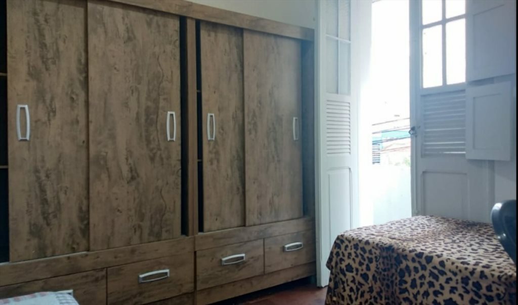 # QUARTO INDIVIDUAL a R$ 995, (ou 575, sendo duplo): quarto confortável com SACADA, Pé-direito alto, todo mobiliado com 2 Camas BOX solteiro (juntas dá uma cama King Size), 2 Guarda-roupas com portas de correr + gavetas, Nincho de parede para livros e objetos pessoais, Mesa grande para estudos de 1,20cm, Cadeira, Ventilador de teto, Internet de 600megas. Acrescenta r$15, mensal para manutenção de pintura do imóvel.