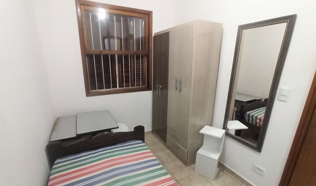 • Mobiliado com cama, colchão de mola, guarda-roupa e mesa.