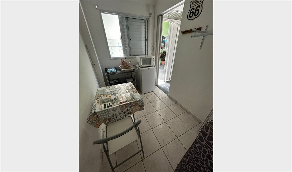 Quarto confortável, com entrada independente, cama de casal, TV a cabo, cozinha com microondas, fogão elétrico, mesa com cadeira, armários grandes. Ótimo lugar para morar.