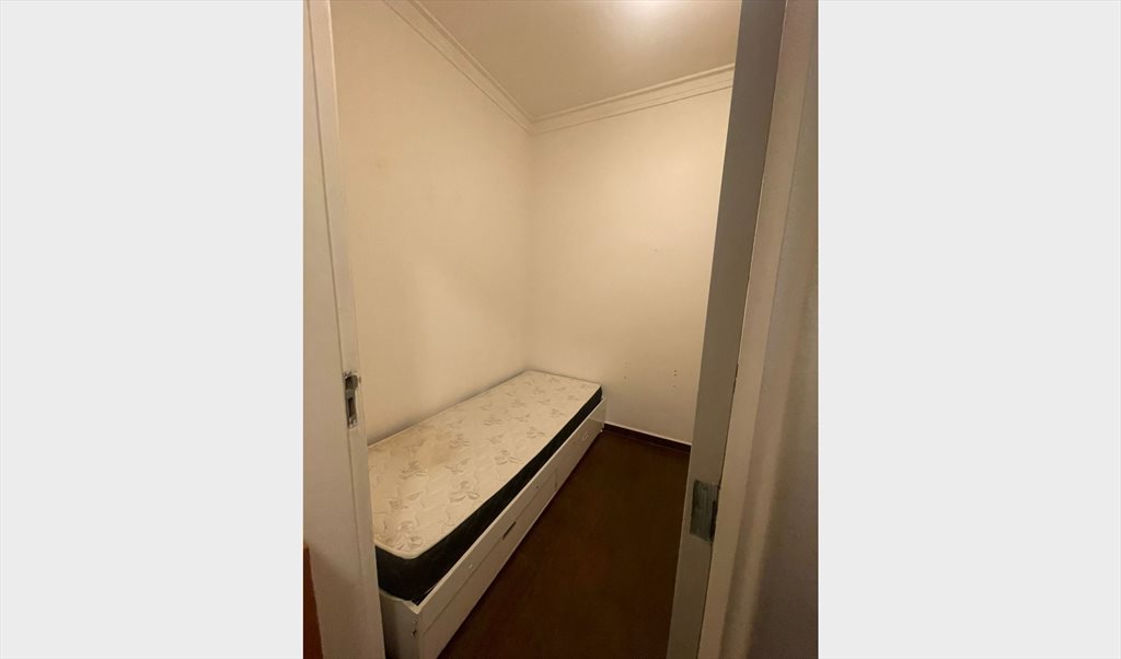 Quarto compacto com cama de solteiro, armário, mesinha de estudos e cadeira (sem janela, porém, porta com espaços pra ventilação), banheiro privativo. Incluso água, energia, internet e faxina quinzenal.