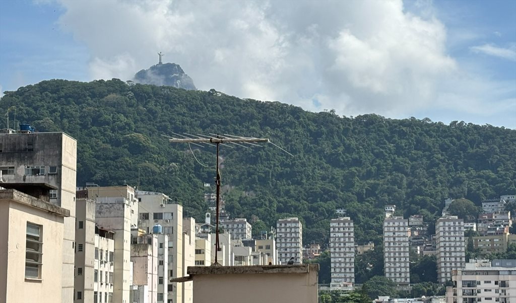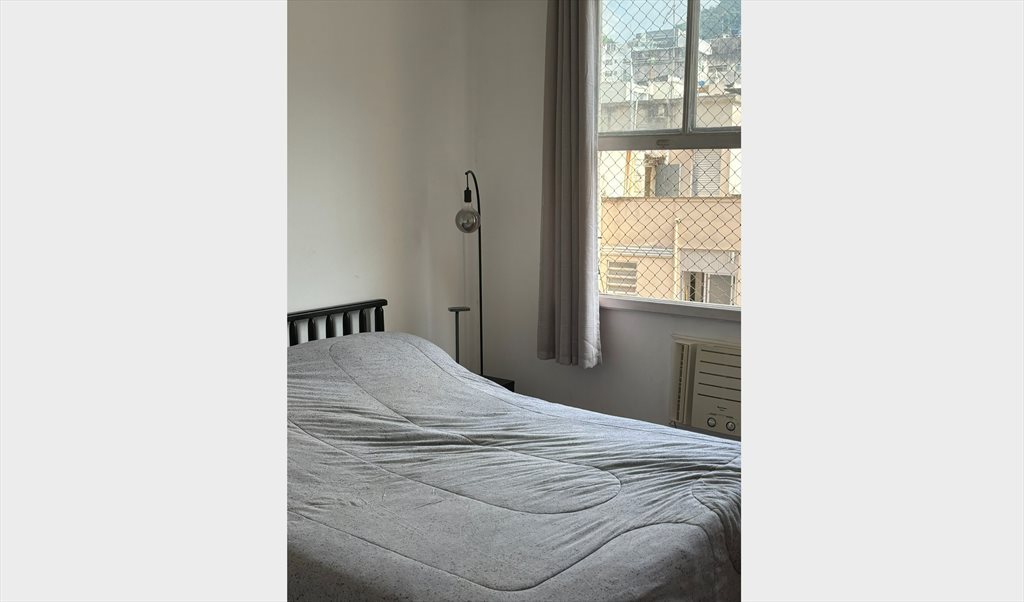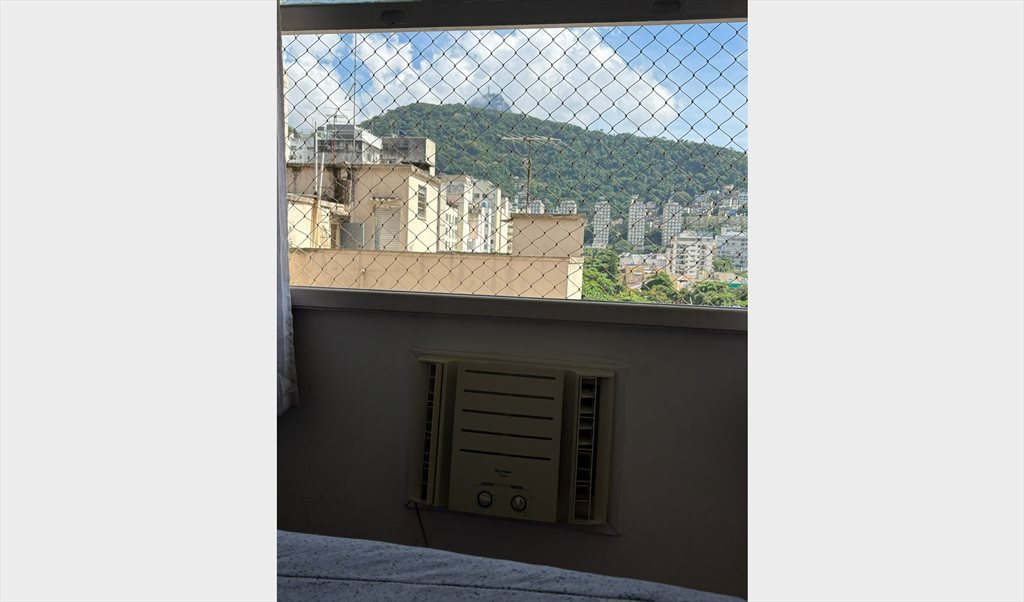 Quarto com cama de casal, armário embutido espaçoso e ar condicionado, com vista para o Cristo Redentor. Prédio muito próximo ao metrô Siqueira Campos e à Praia de Copacabana Posto 4. PACOTE PÁSCOA: 3.200 (4 NOITES). PREÇO NORMAL: 2.800 OU DIÁRIA 300 REAIS.