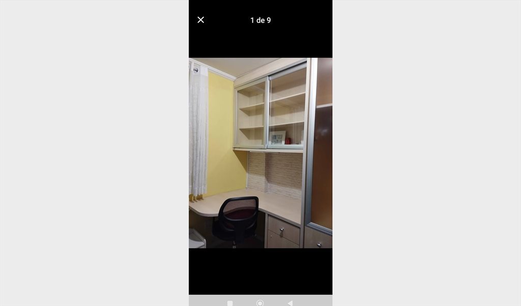 Quarto ensolarado no período da tarde, armários imburidos , bancada para estudo ou trabalho, prédio com a academia, mini mercado, salão de jogos , de festa e churrasqueira