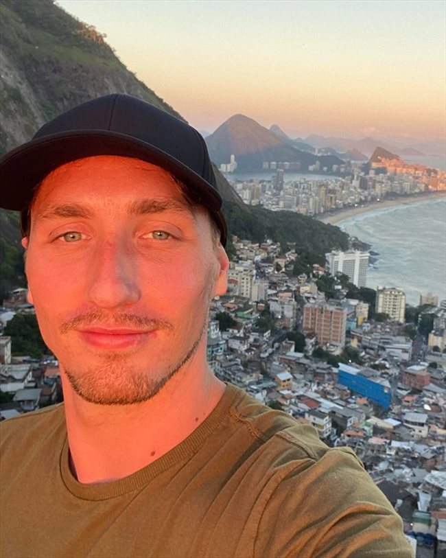 Meu nome é Samuel, sou canadense e cheguei ao Rio inicialmente para um festival de música. Acabei me apaixonando pela cidade e decidi ficar por mais tempo. Minha ideia é permanecer no Rio até o Carnaval, e talvez um pouco mais, se tudo correr bem.