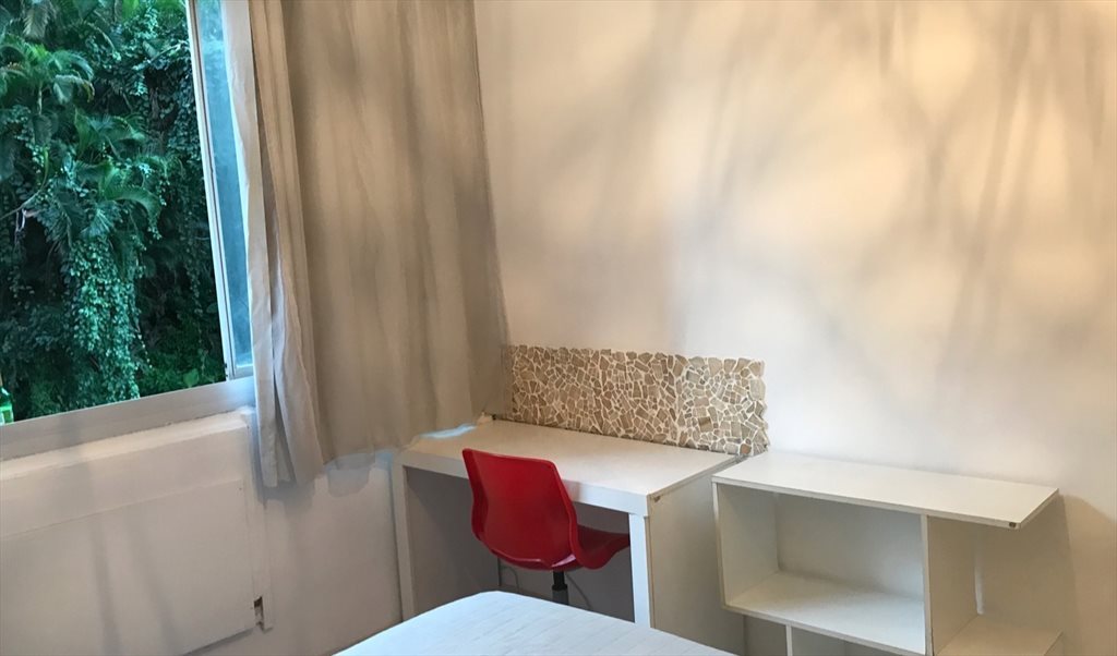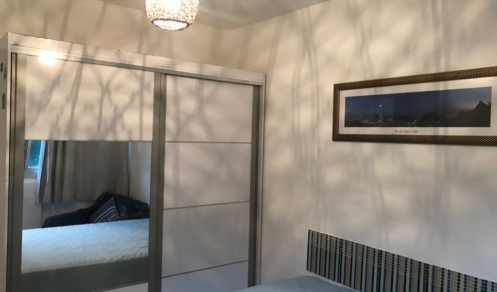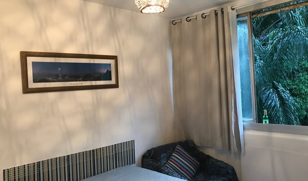 Quarto mobiliado com guarda roupa, cama, , mesa de escritório,ventilador, . Apto com tv na sala, wifi e as demais dependências podem ser usadas (cozinha, área de serviço, sala). O prédio possui área de lazer completa(piscina, sauna, quadra, churrasqueira)e portaria 24hrs. Prédio com ótima localização, próximo a supermercados, farmácia, praia de Botafogo, academia e em frente a estação de metro do Flamengo.