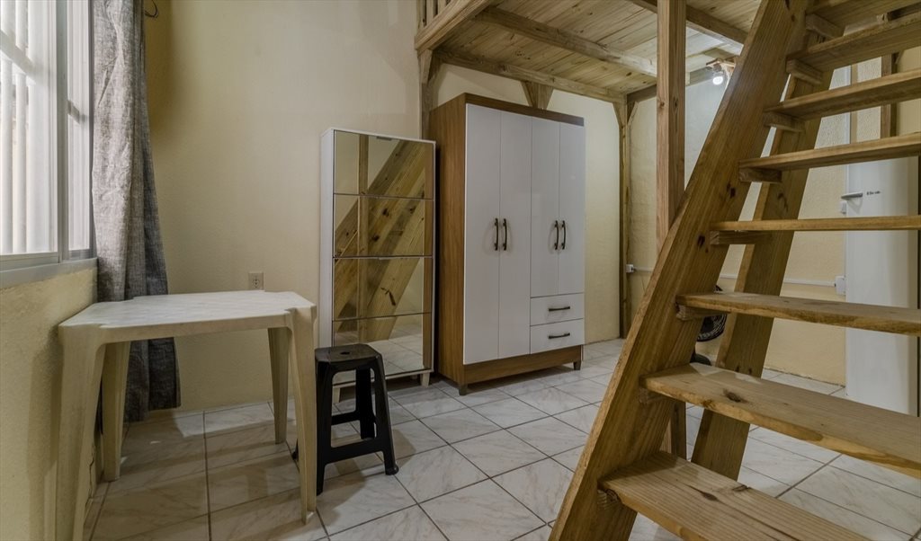 Mezanino com colchão de casal.