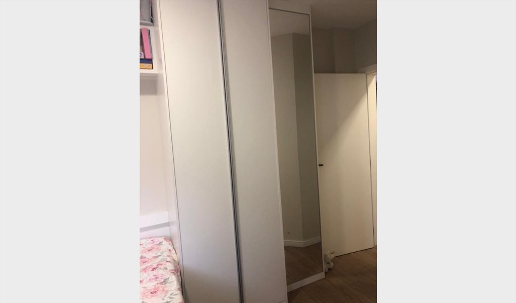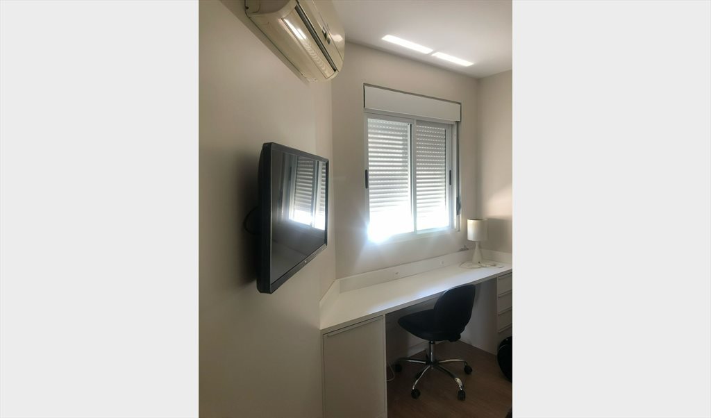 Apartamento de 3 quartos com sacada, totalmente mobiliado, no qual disponibilizo um quarto com cama de casal e televisão, já com armários embutidos (inclusive sapateira), escrivaninha para cantinho de estudo (trabalho) e banheiro para uso próprio (destinado a visitas), mas já possuo suíte para uso próprio.