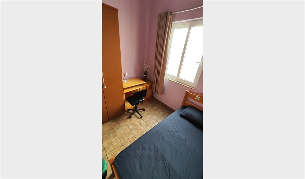 Quarto simples, equipado com o necessário para estudante ou jovem trabalhador viver numa confortável casa grande de 475m2, lugar para tomar sol e relaxar.