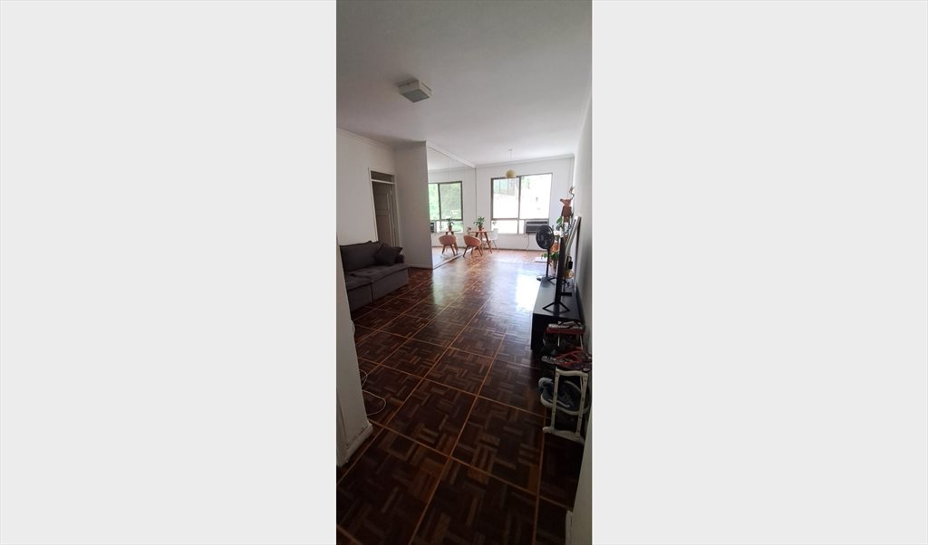 O apartamento conta com uma sala de convivência com mesa, cadeiras e TV. Possuímos todos itens necessários como geladeira, fogão, airfryer, microondas e máquina de lavar roupas.