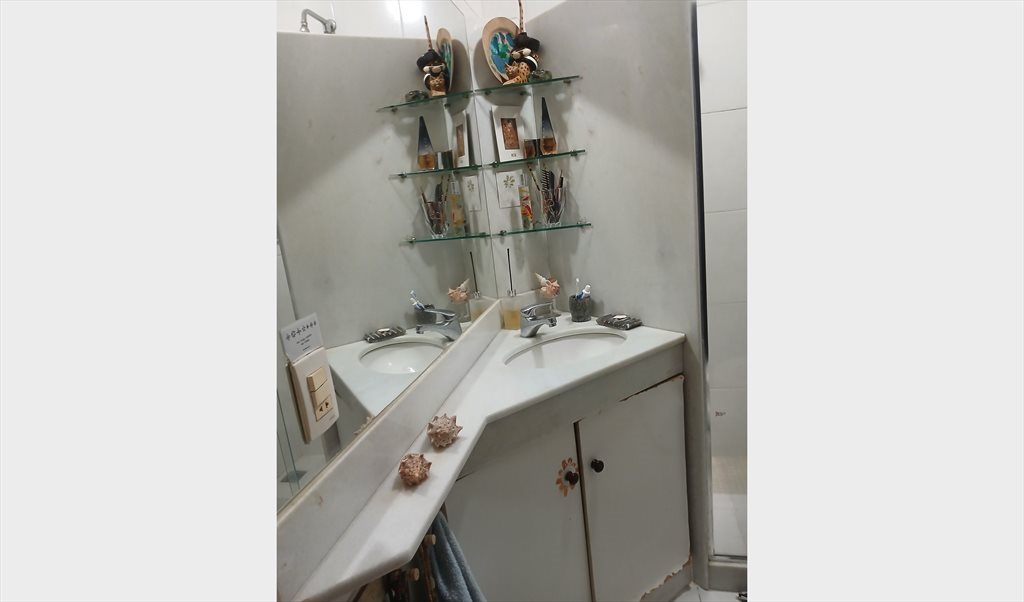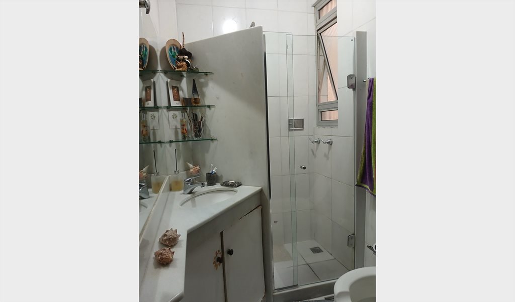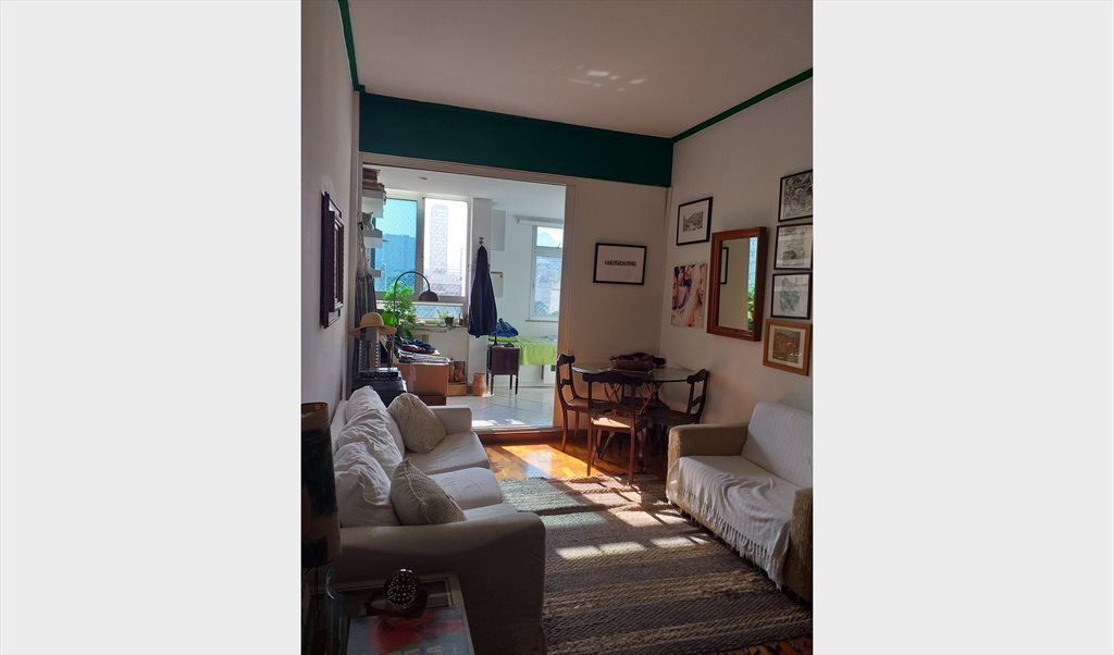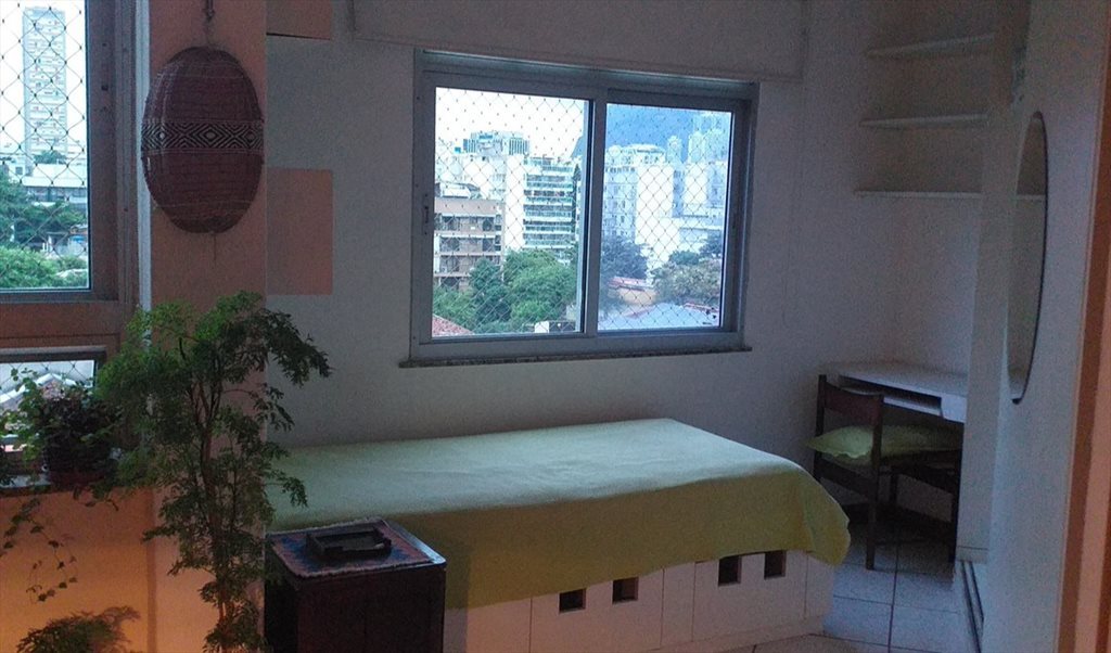 Apto em predio antigo, sol da manhã, armário, estantes e escrivaninha. Porta de correr que dá pra sala. Paredes antigas e espessas que impedem sons entre os 2 quartos. Espaços compartilhados com a moradora/proprietária: sala, banheiro e cozinha (fogão, geladeira, micro ondas e máquina de lavar roupa, louças, panelas compartilhados).