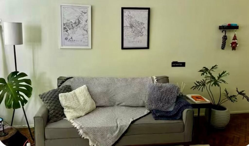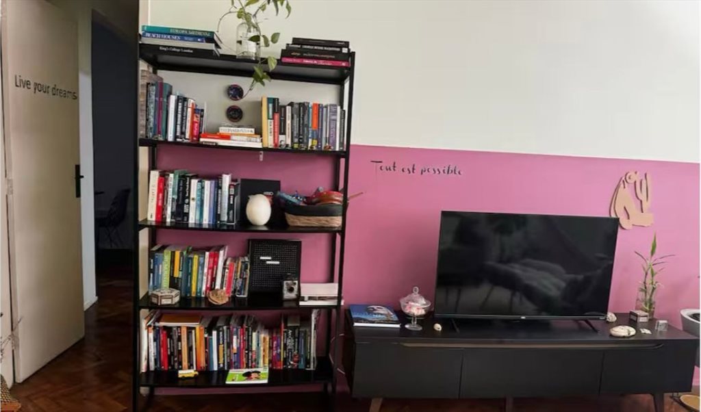 O apartamento é organizado, arejado, tem plantas, e clima de casa mesmo — não apenas um espaço pra dormir.