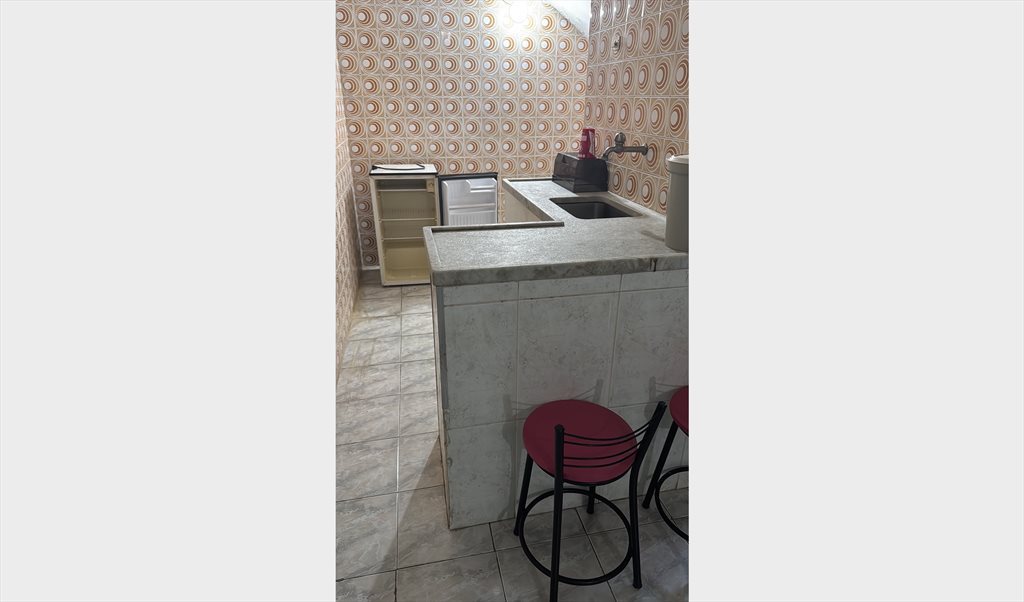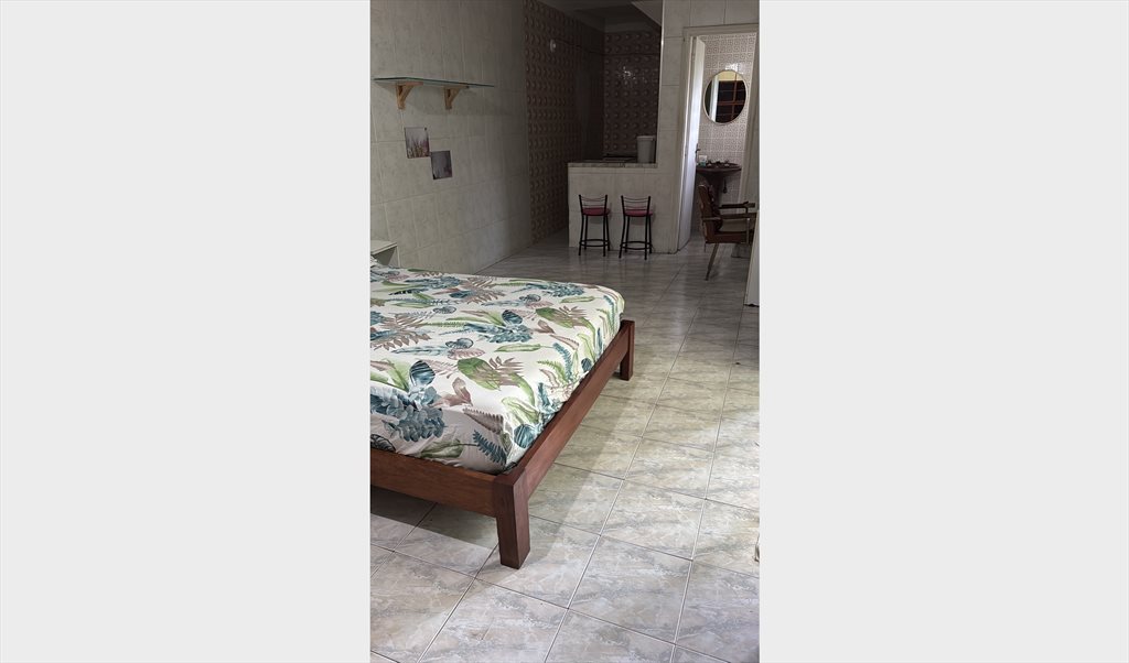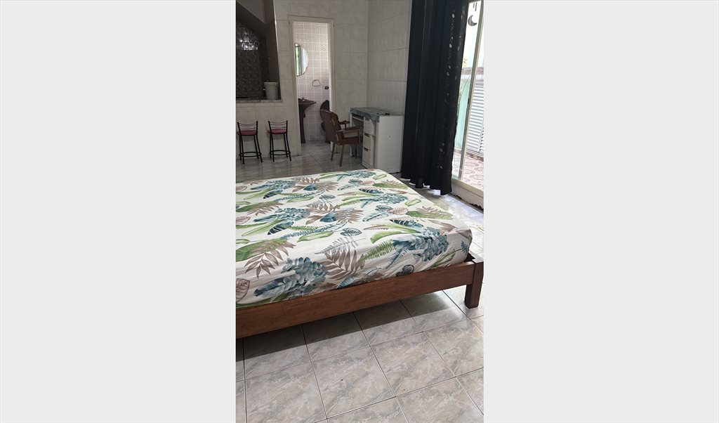 Quarto grande e espaçoso, com mini cozinha e lavabo privativos.