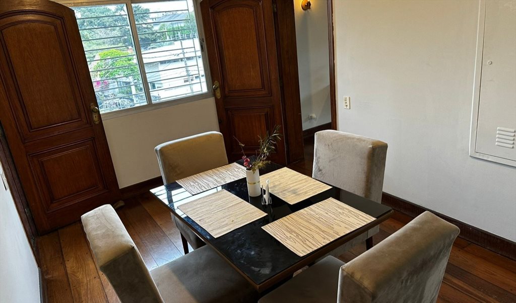 -Tem uma sala de jantar onde fazemos coisas especiais de comer, tem uma foto ali embaixo.
