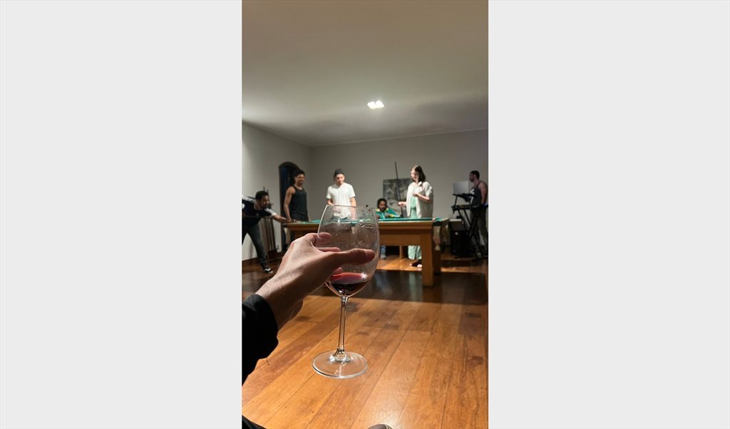 -A sala de estar, possuimos uma mesa de bilhar para nos reunirmos e passar o tempo.