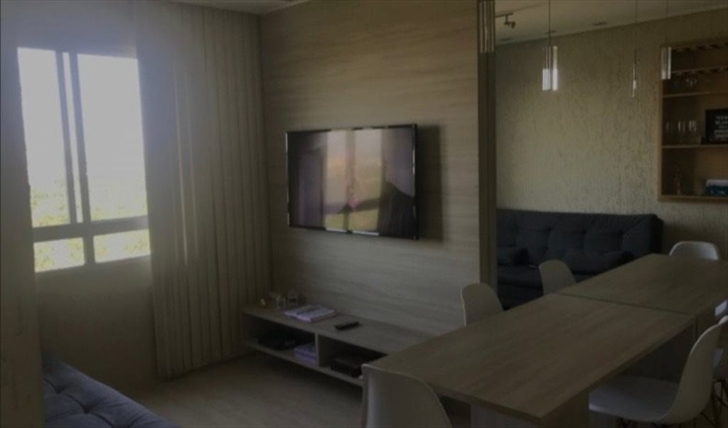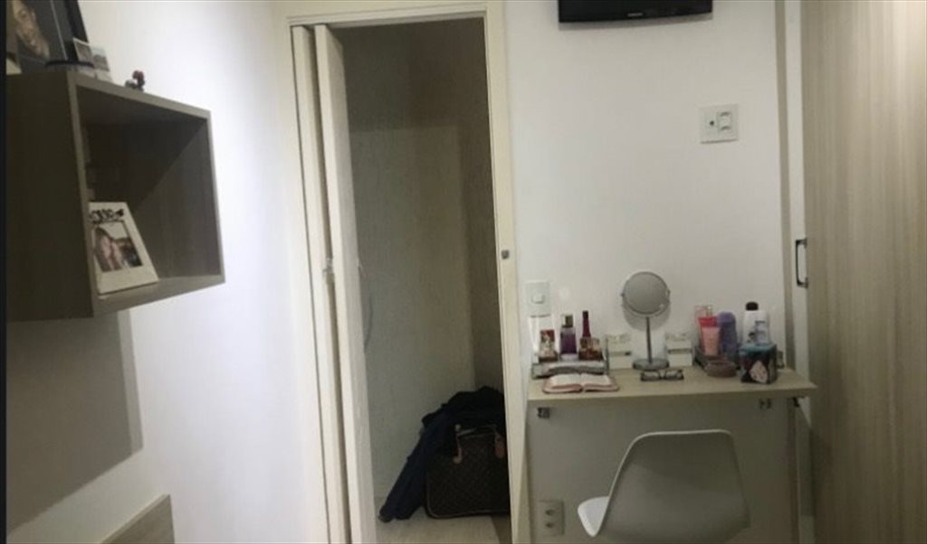 O apartamento é novo e está todo mobiliado, precisa apenas trazer roupa de cama para uso do quarto. Tem cama e colchão (mas se quiser pode trazer o seu), tem guarda roupa planejado bem grande, nichos na parede, suporte pra tv, janela com persiana e uma mesa dobrável com cadeira.