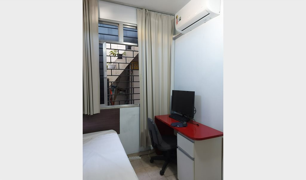 Quarto mobiliado (cama, guarda-roupa, escrivaninha).
