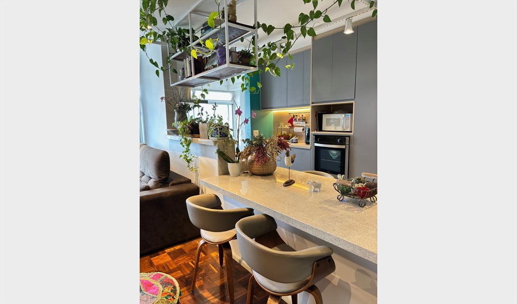 Apartamento de 2 quartos, bem iluminado, good vibes, linda vista urbana, em Perdizes, próximo à PUC. Sou muito tranquila e habituada a dividir o espaço. Falo 5 línguas, gosto de ler, fazer ginástica, viajar, sair, ir a shows e bater papo. Moro sozinha com minha cachorra Aretha, uma gigantona rajada muito carinhosa, limpinha e companheira. Trabalho home office para uma empresa australiana e gostaria de dividir o espaço com mais uma pessoa, de preferencia mulher, que seja simpática, tranquila, trabalhadora e que goste de cães.