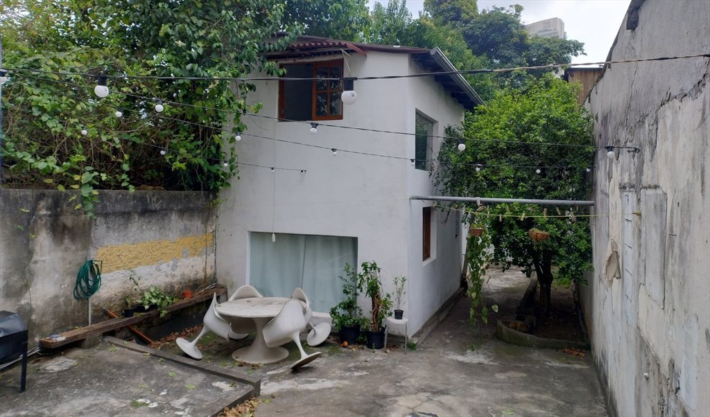 Quintal espaçoso, árvore frutífera e uma área de serviço.
