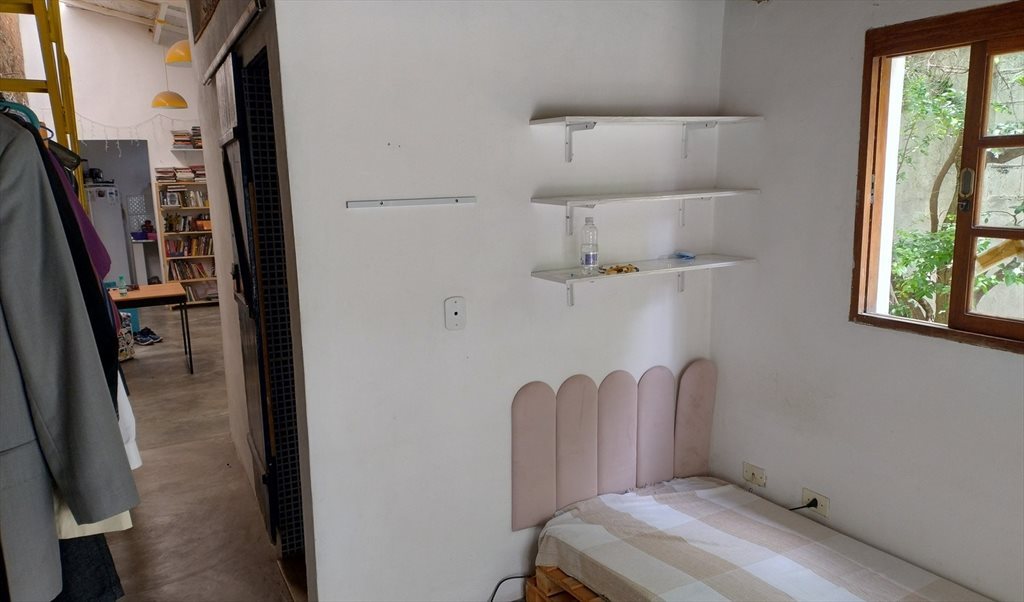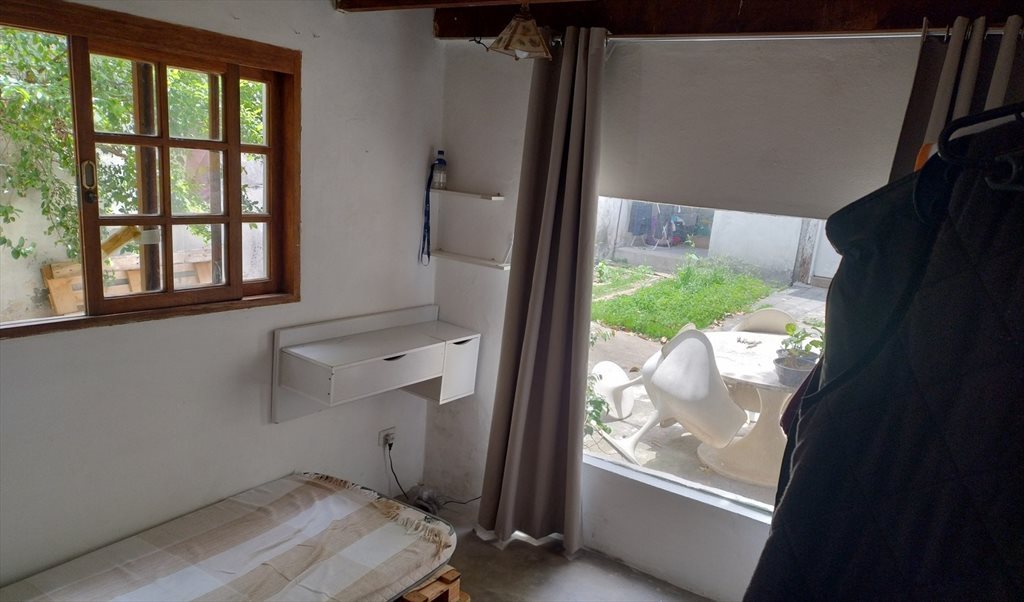 Quartos disponível: o de baixo, próximo ao banheiro. Eu fico no de cima.