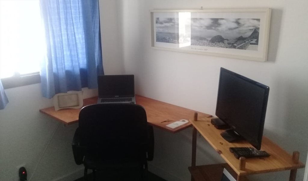 Recentemente coloquei também uma prateleira em L com cadeira para escritório para que a pessoa possa estudar ou realizar pequenas atividades profissionais