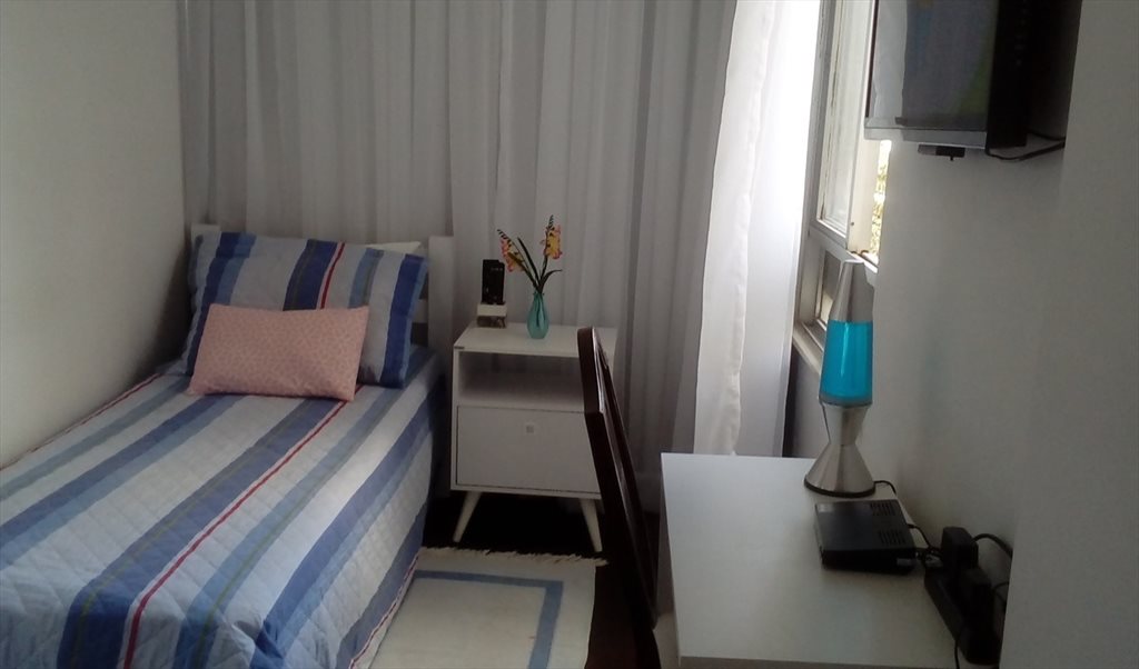 Agradavel quarto de solteiro, com tv, armário, mesa de trabalho, ventilador de teto e wifi. Próximo a supermercado, padarias, farmácias, bancos e pontos de transportes.