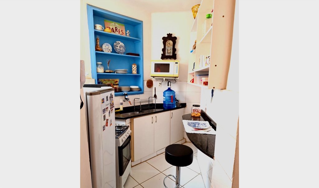 Há máquina de lavar roupa disponível, podendo ser usada 1 vez por semana.