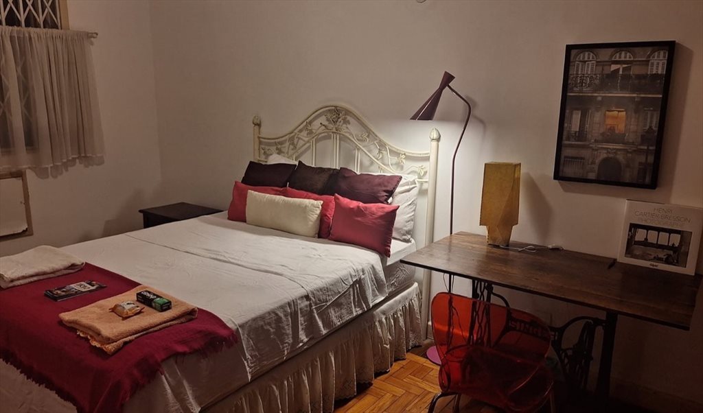 Quarto amplo, iluminado e tranquilo, com vista para a natureza, localizado numa área bucólica, a 5-10 minutos a pé da Lapa, Centro e Santa Teresa, bairros conhecidos pelos seus bares e blocos de Carnaval.