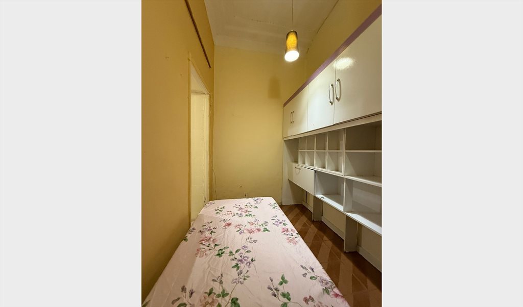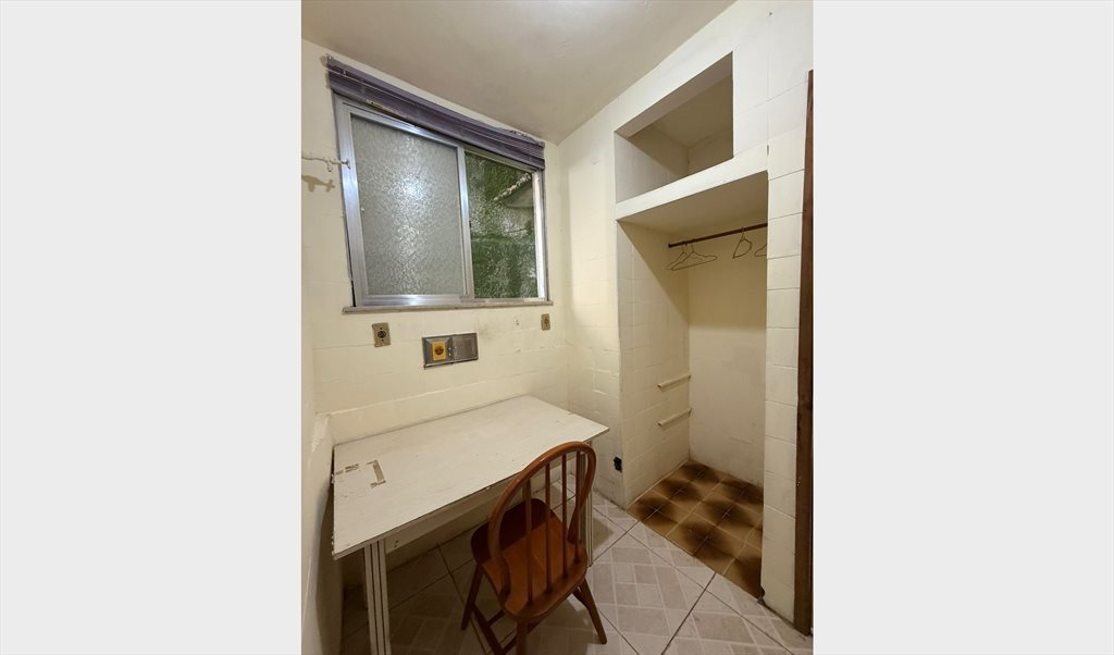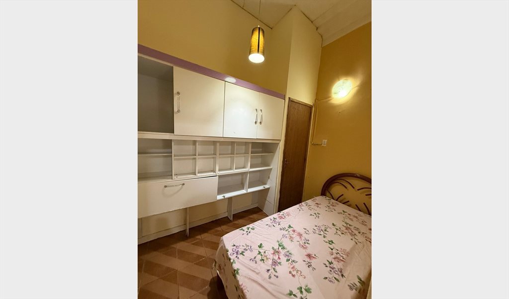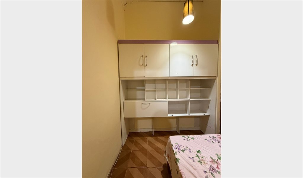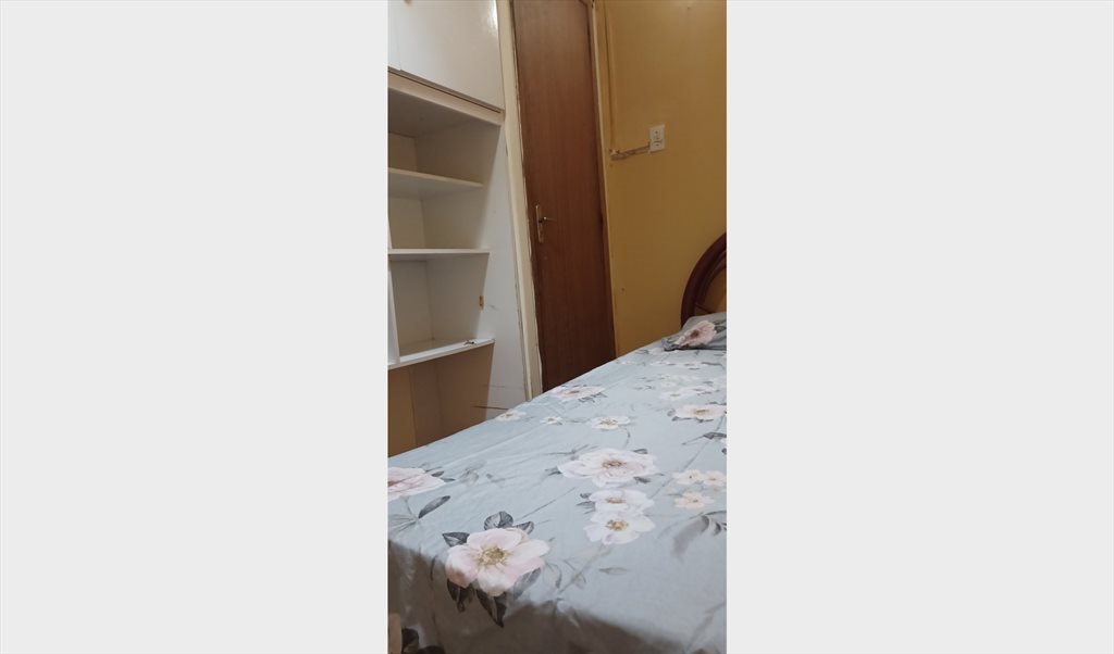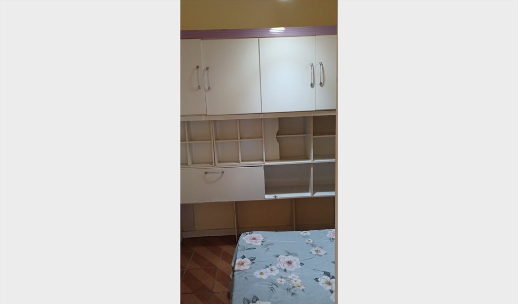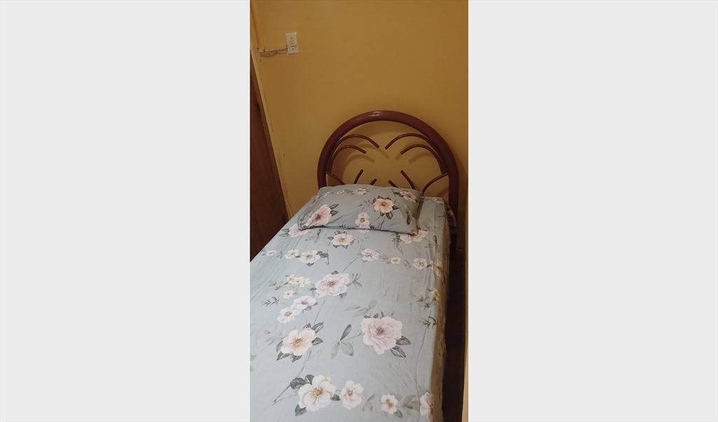 Quarto com cama de solteiro , armario, tem mesa , lugar para pendurar roupas e guardar malas.