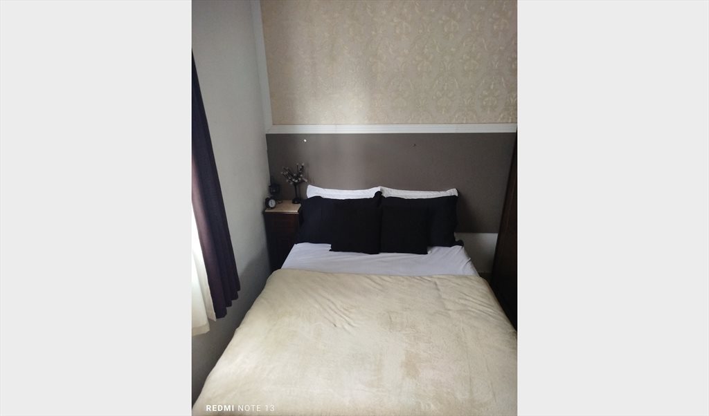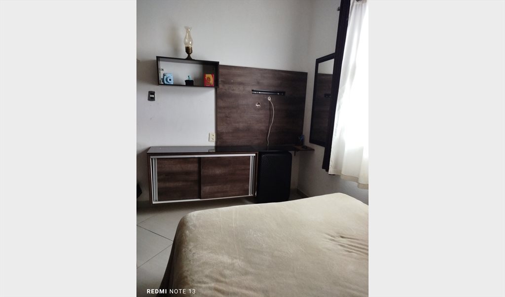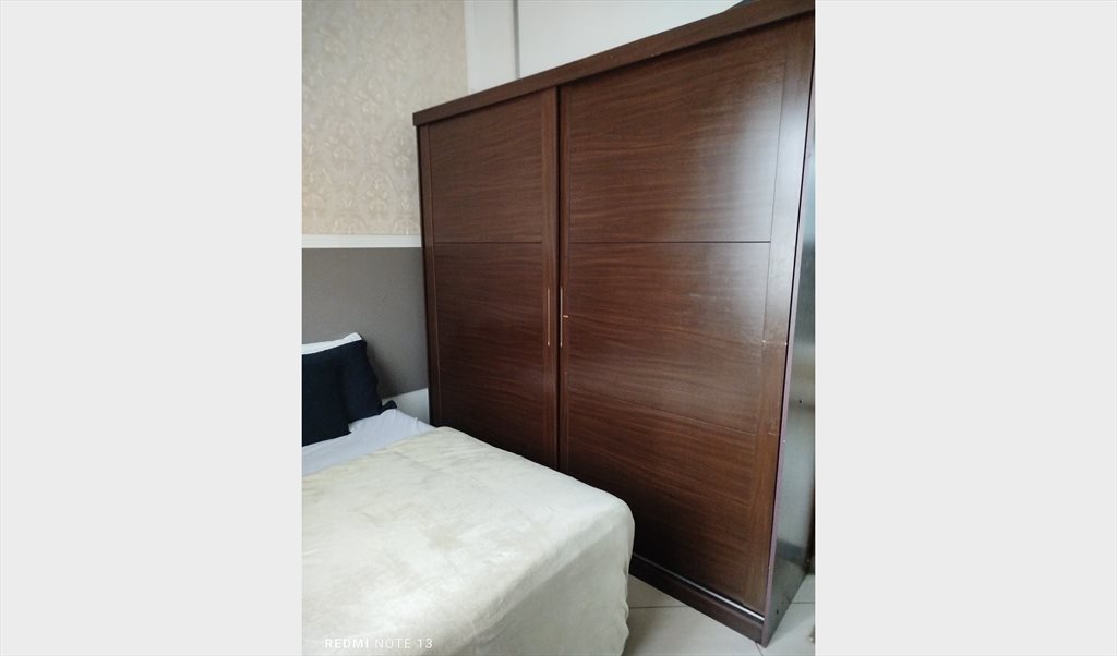Mobilhado com cama box de casal, guarda roupa de casal com porta de correr, sapateira e painel embutido para TV (sem TV) e criado mudo.