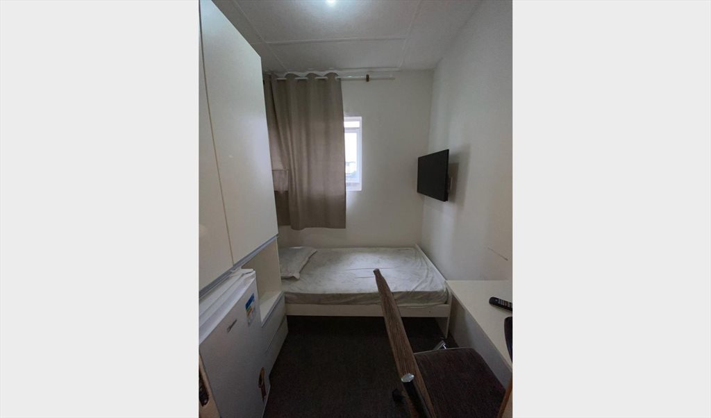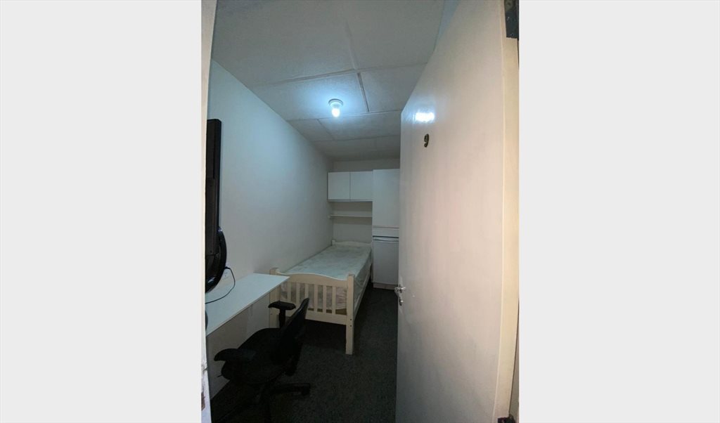 Quartos individuais são mobiliados com TV, frigobar, armário, cama de solteiro (com roupa de cama), ventilador e mesa de estudos.