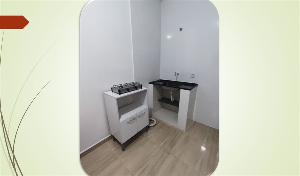 Cozinha compacta com pia e espaço para fogão.