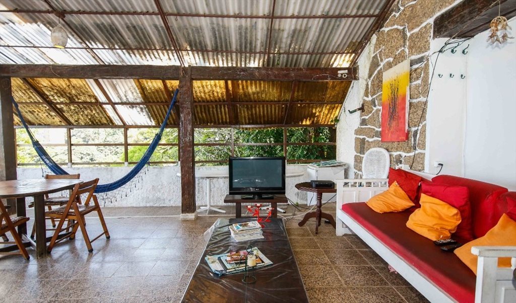 Nessa varanda temos sofá, poltronas, mesas, cadeiras, redes uma TV com Net, que você pode usufruir. É um lugar fresco e muito arborizado.