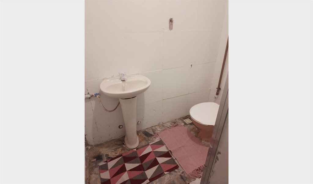 Máquina de lavar e cozinha compartilhadas.
