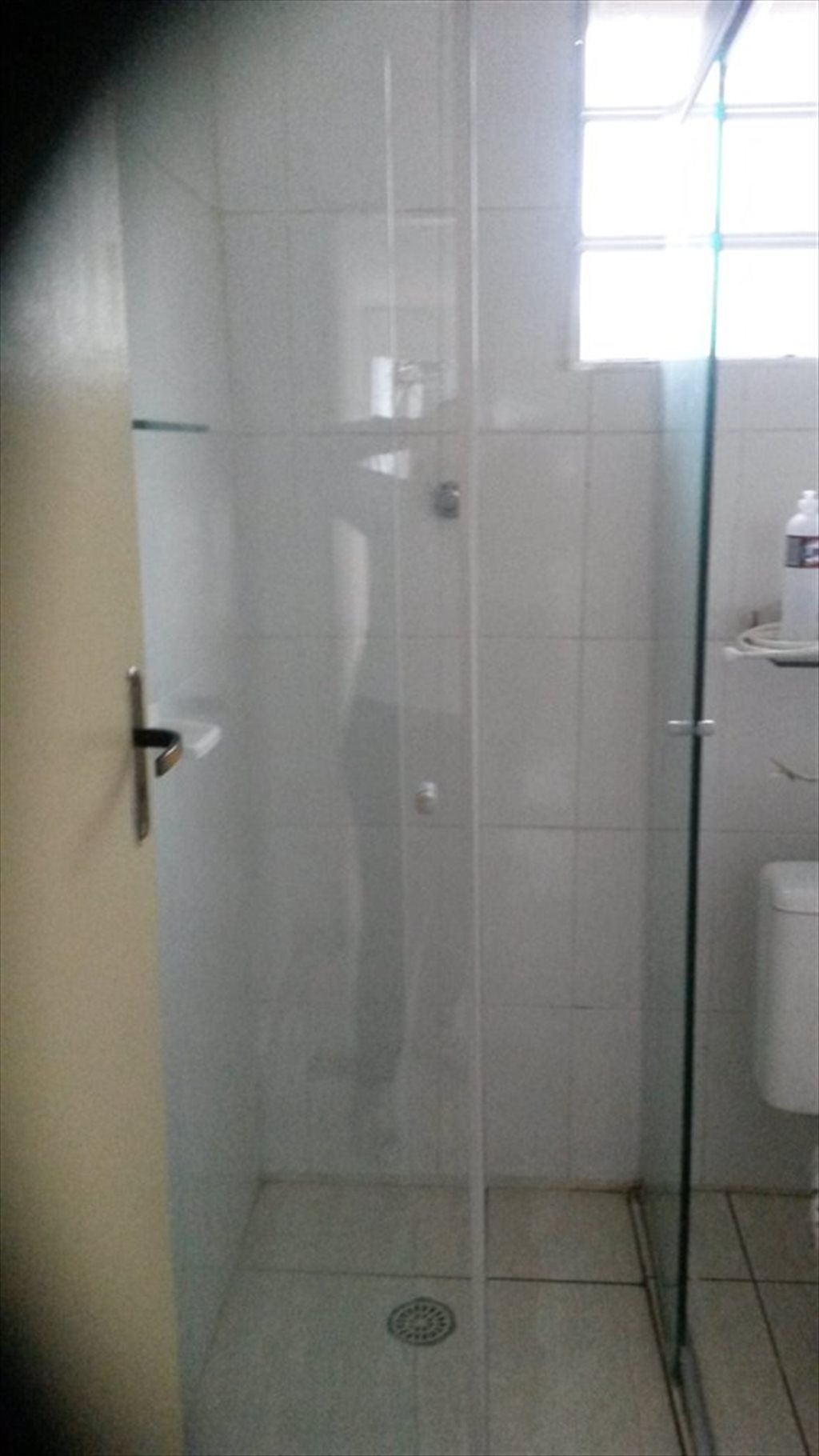 Banheiro com espelho e box de vidro. Casa totalmente reformada. Lavanderia com tanque e máquina de lavar. Lugar seguro e agradável,