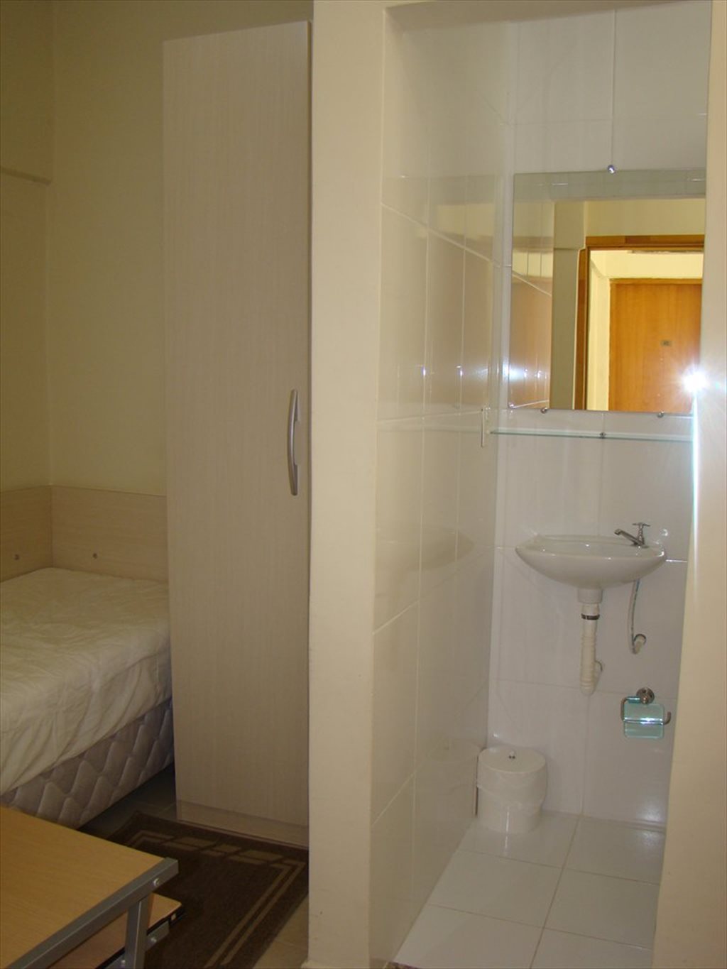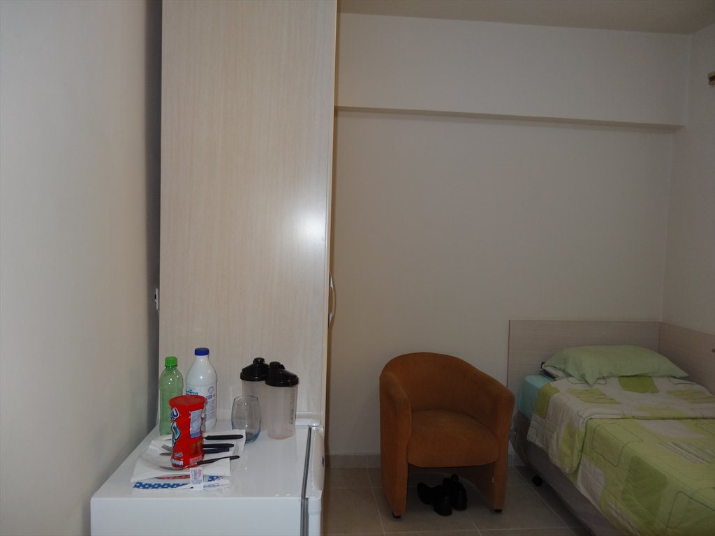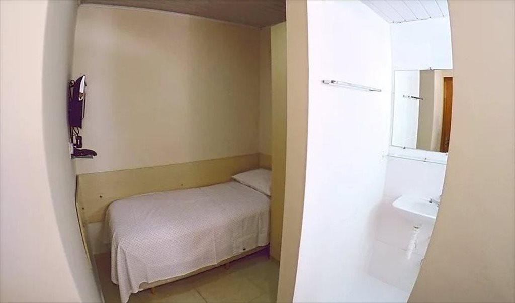 Nossas suítes são todas individuais, (quarto + banheiro ), mobiliadas com: Cama box de solteiro, Armário, Frigobar, Mesa , Cadeira e TV .